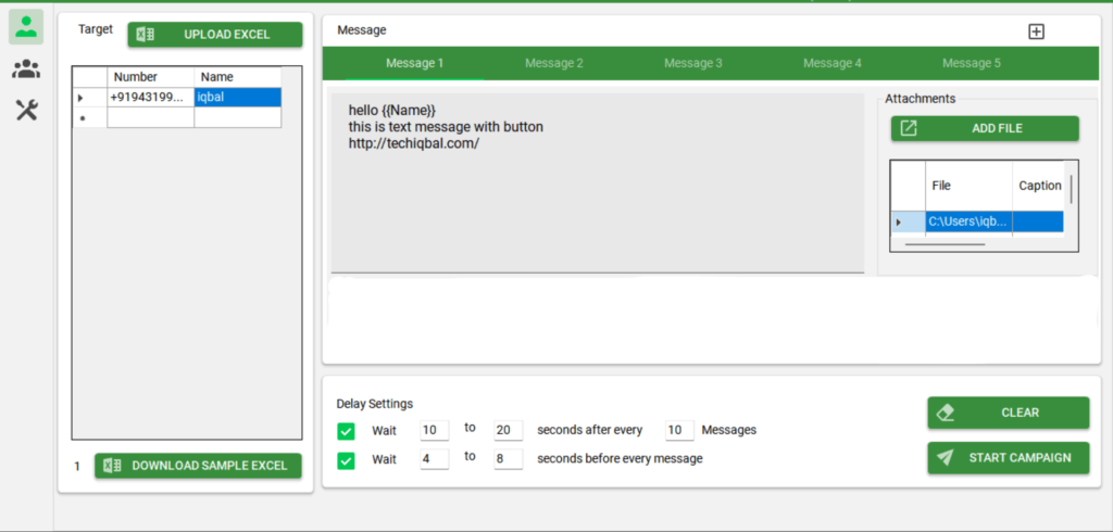 Unleash the power of personalized messaging with our feature! Send unlimited custom messages to your leads effortlessly. Easily import data from Excel or add details manually. Plus, attach any file you want and engage your leads like never before. Get started today and watch your conversions soar