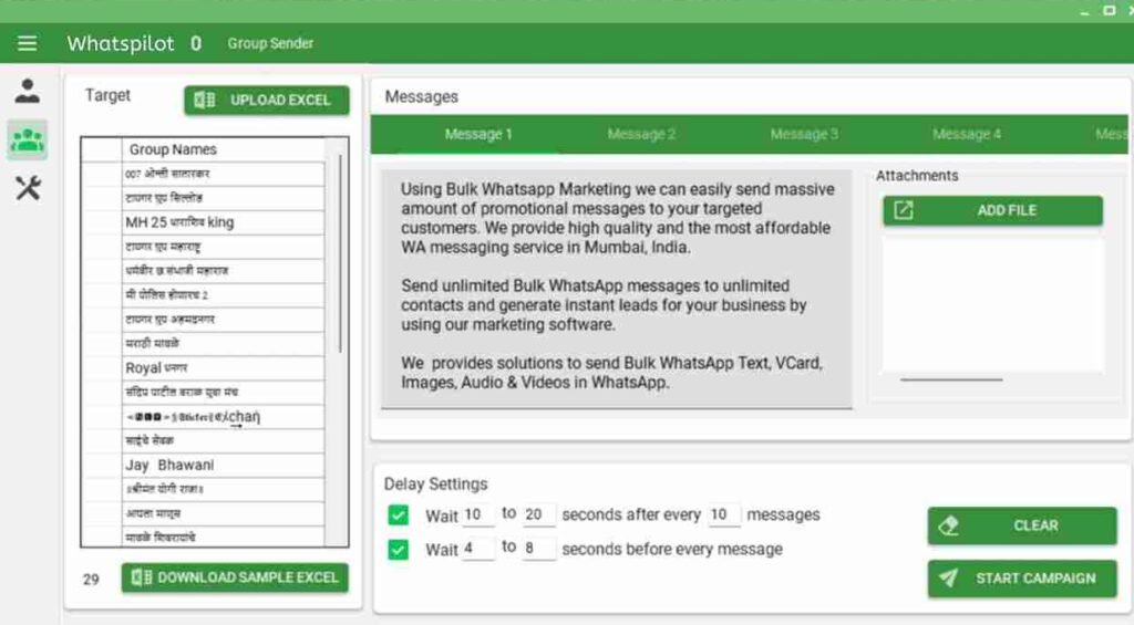 It has a list of settings that can help to send a large number of messages without getting your account blocked. Whatsapp will not block you if you use this anti blocking properly. And also with software we are providing the way to get virtual number so that if whatsapp block your contact you dont need to worry about it because you will get virtual number as much as you want.